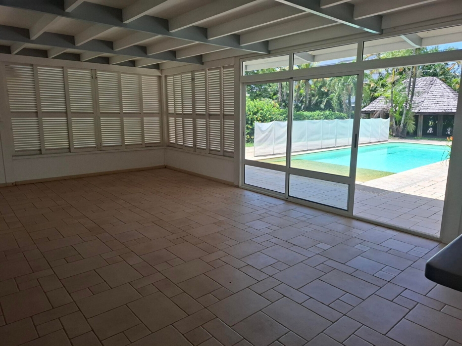 Une Villa de type 4 non meublée, d'une surface habitable de 163 m2 comprenant au rez-de-chaussée : Un séjour, une cuisine aménagée équipée d'un four, d'une plaque vitro céramique, une buanderie, deux chambres climatisées avec placards, deux salles d'eau, deux WC, une terrasse , un garage, une salle de jeux ou de stockage, un bureau. A l'étage, Une mezzanine, une chambre climatisée avec placard, et combles aménagés. A l'extérieur, Une piscine, un carbet de 10m2, un jardin. Sur une surface totale de 240 m2. Disponible à partir de Mi Mars 2026. Les informations sur les risques auxquels ce bien est exposé sont disponibles sur le site Géorisques http://www.georisques.gouv.fr