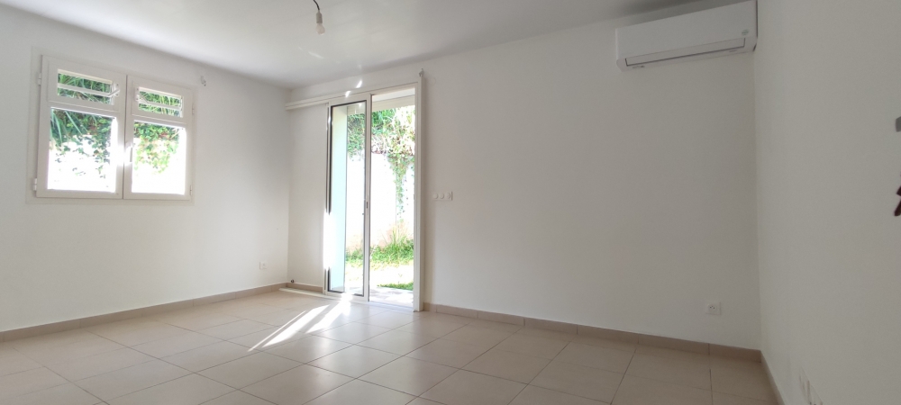 D'une superficie d'environ 100 m2, elle comprend très grand espace de vie, salon et cuisine ouverte aménagée, trois chambres climatisées avec placards dont une suite parentale attenante à sa salle d'eau avec toilette intégré et grand placard, une salle d'eau supplémentaire indépendante, deux toilettes indépendants dont un extérieur, une grande terrasse et un jardin cloturé.