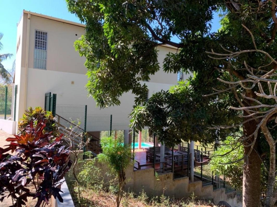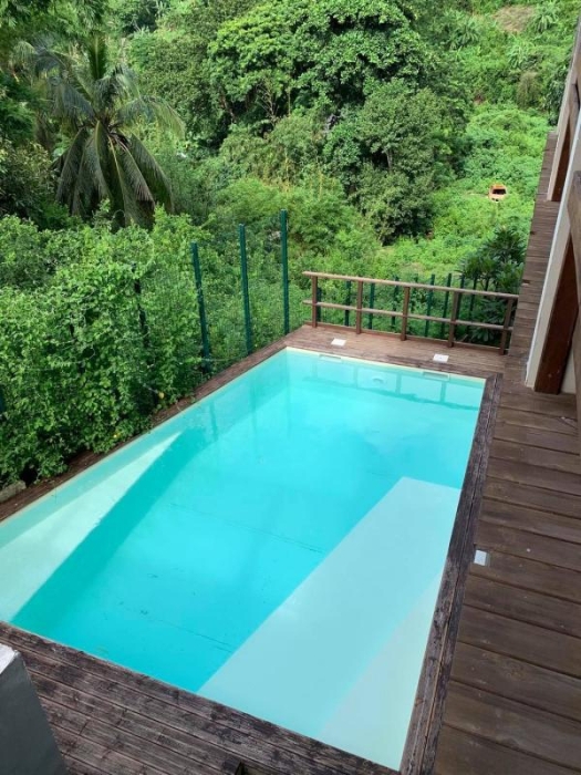 La maison bénéficie également d'un jardin privatif, une piscine et de trois emplacements de parking sécurisés par un portail métallique.