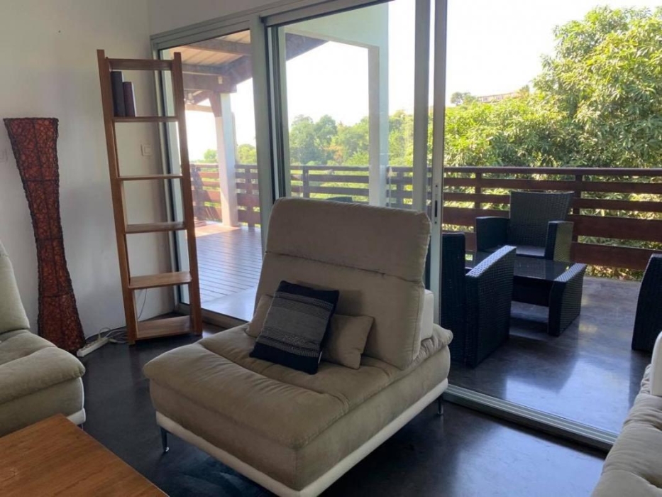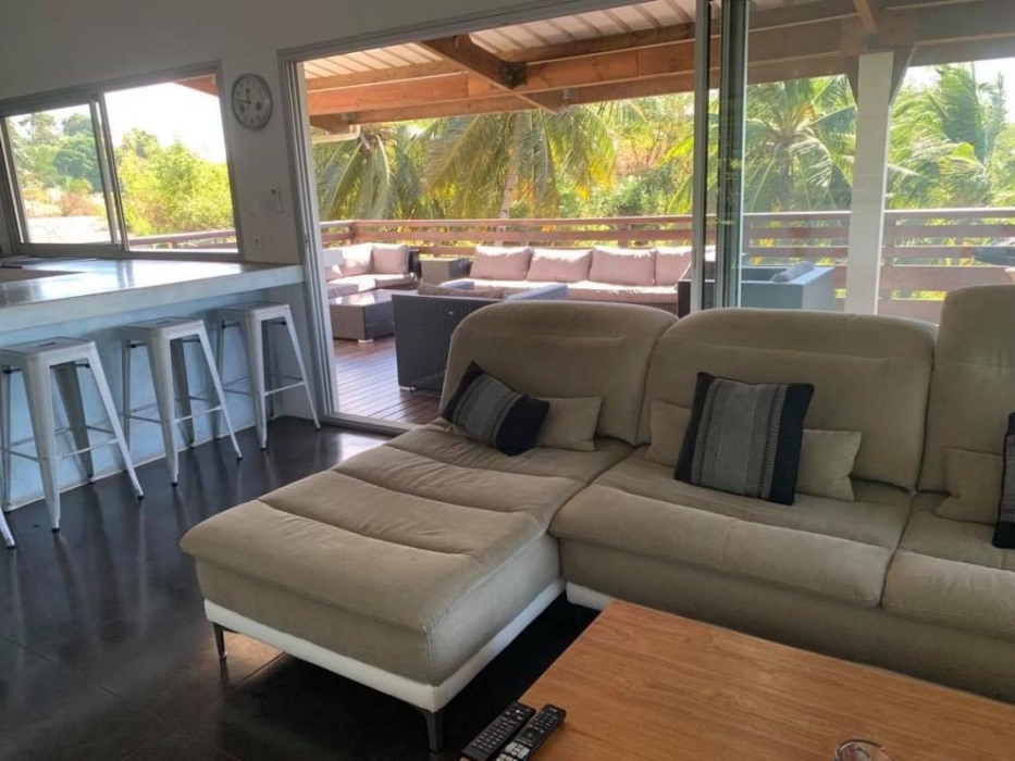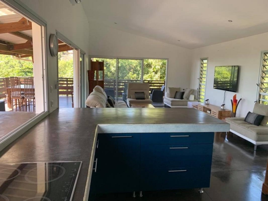 AU R+1 : un salon climatisé, une cuisine ouverte aménagée et équipée, une buanderie et un WC ainsi qu'une terrasse de 60m².