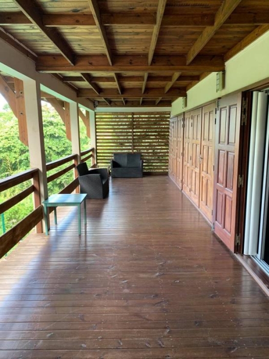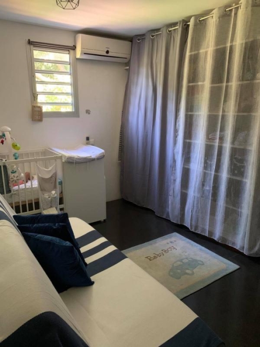 AU RDC : trois chambres climatisées avec placard, une salle d'eau avec douche à l'italienne, un WC Un local de rangement à l'entrée et une terrasse en bois couvertes de 30 m².