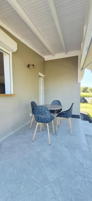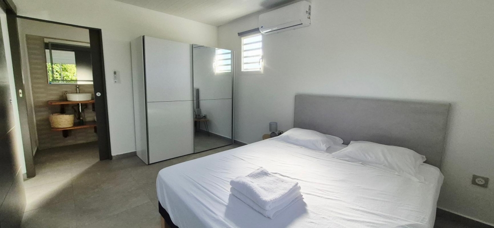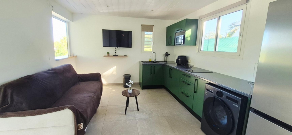 Cette maison entièrement meublée avec goût est composée d'un séjour avec cuisine aménagée et équipée, une chambre climatisée, une salle d'eau avec WC et une terrasse couverte.