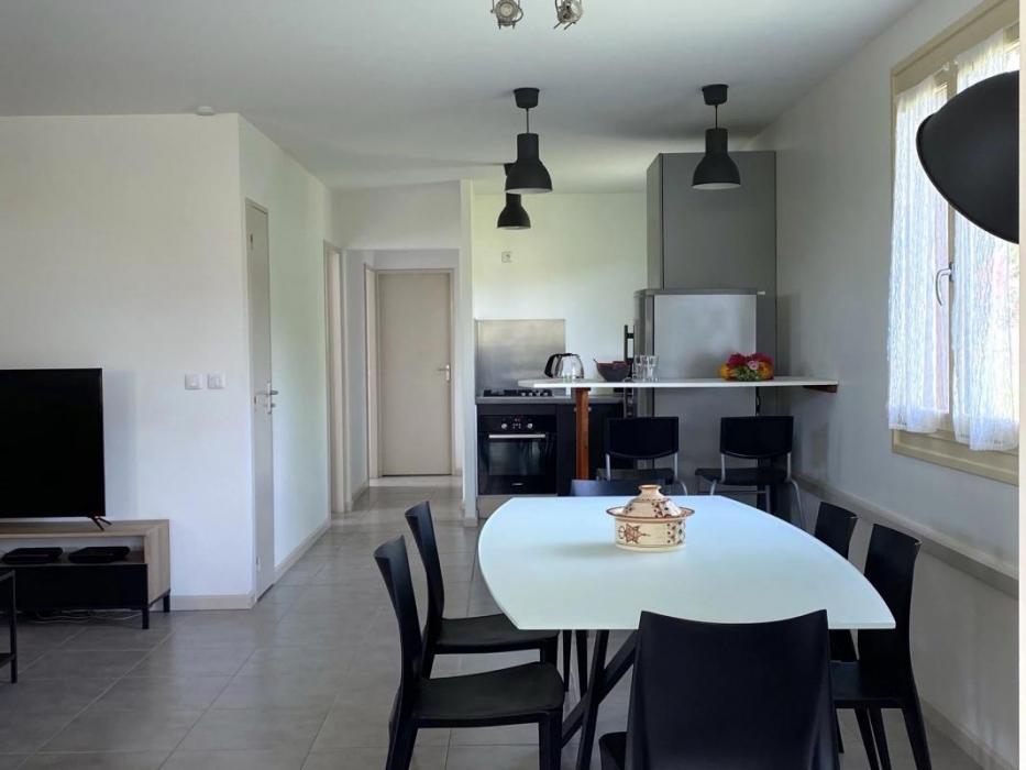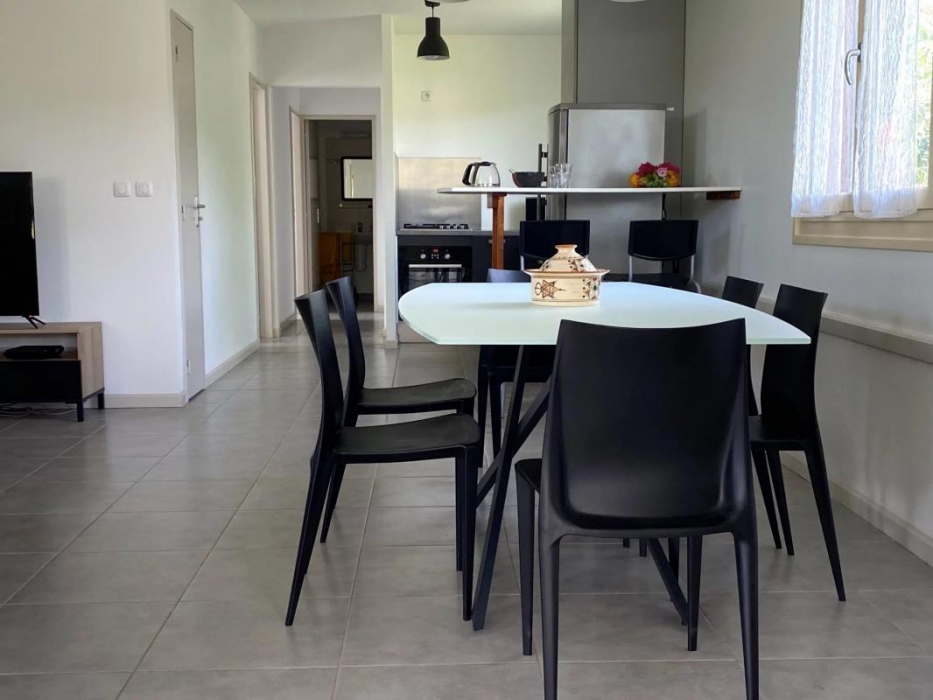 Villa meublée F3 de 118 m² dans une résidence calme, ventilé et arboré. Elle est constituée d'un séjour, d'une cuisine, deux chambres climatisées, d'une salle d'eau, et d'une spacieuse terrasse. Cerise sur le gâteau, la magnifique piscine collective.