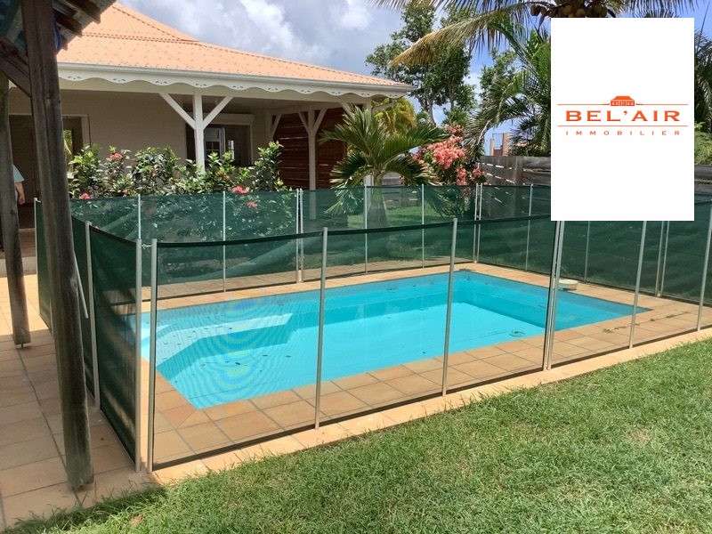 Jolie maison de type F4 situé dans un quartier résidentiel, avec trois chambres dont une suite parentale avec salle d'eau et wc attenant, une salle d'eau supplémentaire avec wc, une cuisine avec cellier. Equipements extérieurs agréables, piscine, carbet, et une grande terrasse couverte, le tout sur un terrain clôturé.