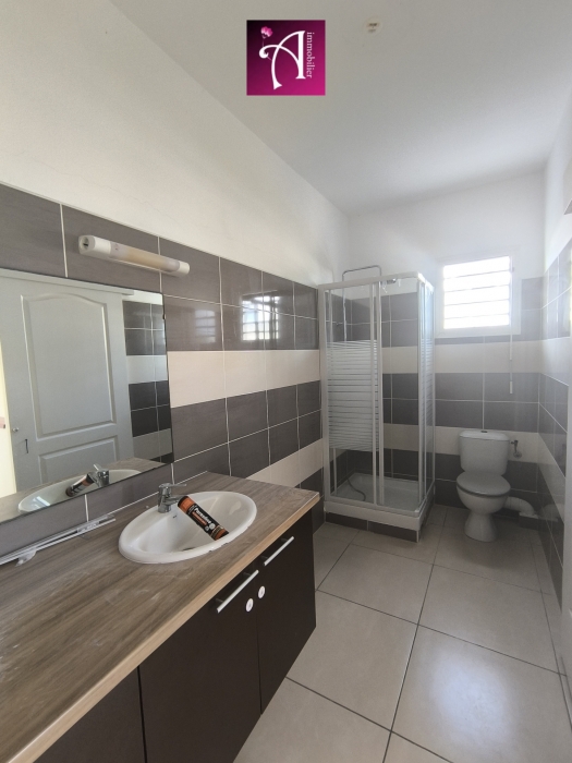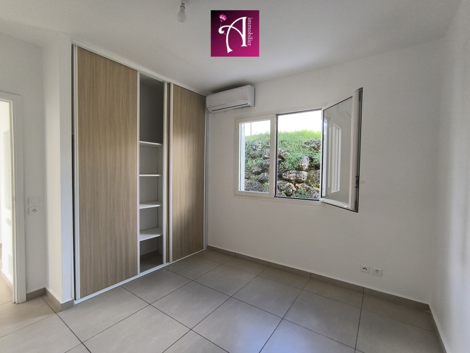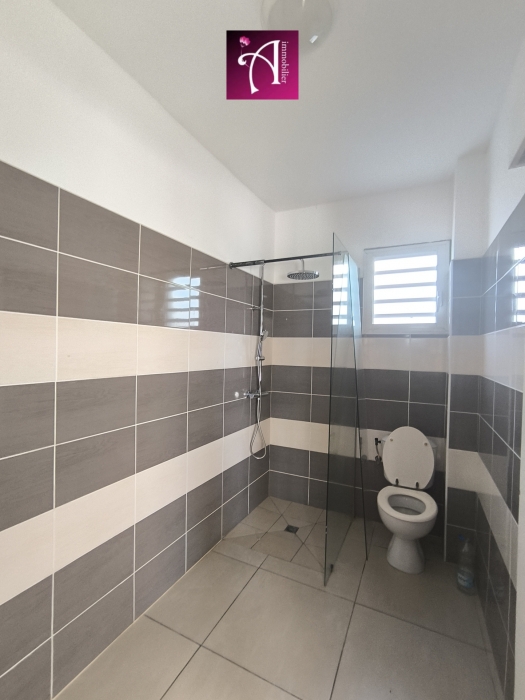 Elle se compose au rez-de-chaussée d'une cuisine ouverte sur un vaste séjour prolongé par une spacieuse terrasse en L, idéale pour profiter des extérieurs.Une chambre climatisée avec placard et une salle d'eau avec WC complètent ce niveau.