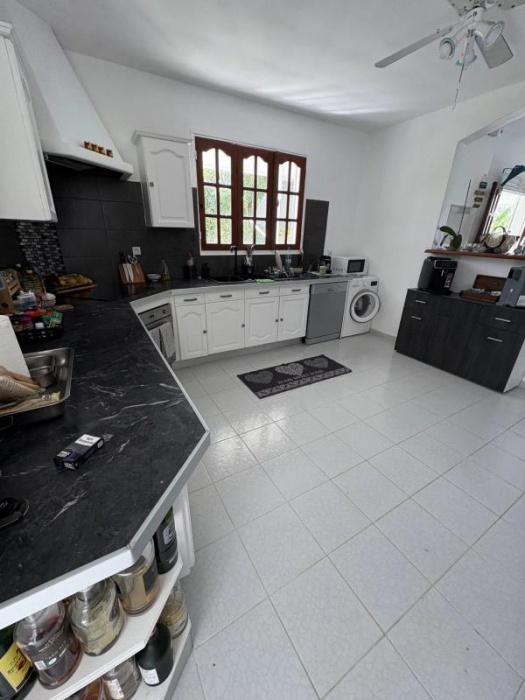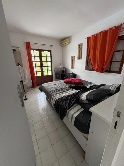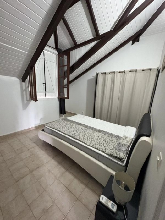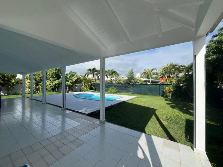 Jolie villa T6 avec piscine à Arnouville,sans odeur de sargasse, à proximité de la Z.I. de Jarry et des commerces, au calme, comprenant : 1 cuisine aménagée et semi équipée (Plaque, hotte, four, frigo), 1 séjour climatisé, 1 bureau ou chambre, 1 dégagement, 1 salle d'eau avec wc , 1 chambre climatisée.