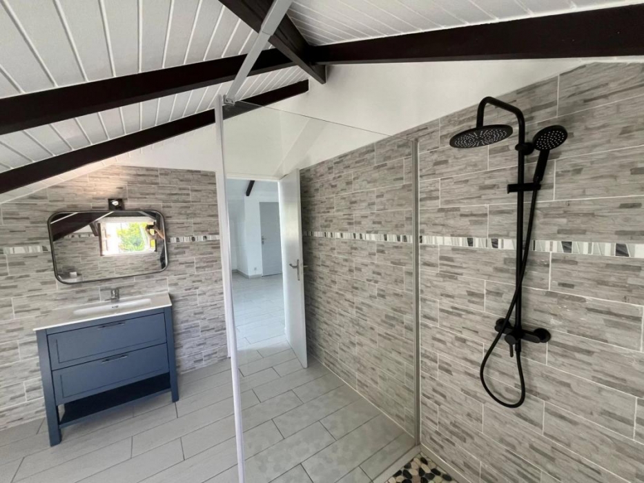 A l'étage : 1 dégagement, 2 chambres climatisées, 1 suite parentale climatisée, avec sa salle d'eau et wc, attenante, 1 buanderie avec WC, lavabo et lave-linge.