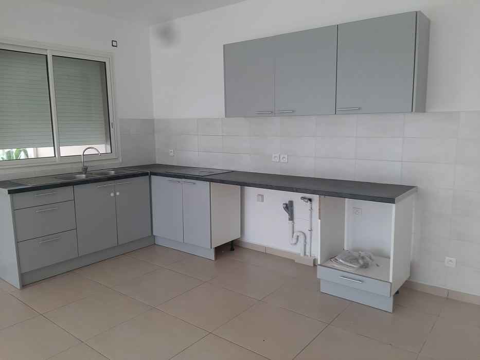 Bonne prestation pour ces deux villas mitoyennes composées chacune d'un espace séjour/cuisine de 33,41m2 : séjour avec grandes baie vitrées donnant sur une varangue de 62,65 m2 et cuisine semi équipée (meubles de rangement, emplacement four et lave -vaisselle. Electroménager : plaques de cuisson).