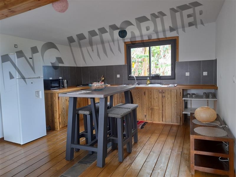 Beau chalet F3 meublé de 64 m² (dont 10 m² de varangue) + 15 m² de terrasse avec vue imprenable sur l'océan, situé dans un environnement calme et verdoyant, à moins de 10 minutes de la 4 voies et à 5 minutes du centre ville de Piton Saint Leu. Il se compose de deux chambres (11 m² et 9 m²) avec placards, un wc séparé, une salle d'eau (avec douche à l'italienne et meuble sous vasque), un séjour avec cuisine américaine aménagée et équipée (nombreux placards et plaque à gaz) donnant sur la varangue et la terrasse, chauffe-eau solaire et deux places de stationnement. Le tout sur 300 m² de terrain et à 350 mètres d'altitude.