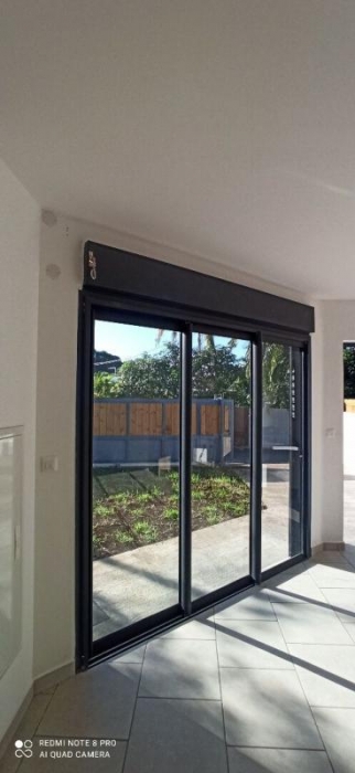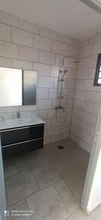 ORPI Maison de plain-pied de 74 m² clôturée avec petite cour à l'avant et à l'arrière, comprenant 1 cuisine équipée/aménagée ouverte sur un séjour avec clim, 3 chambres placards dont 2 avec clim, 1 salle d'eau, 1 wc.