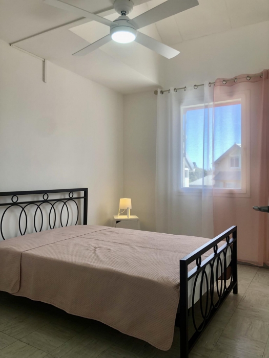 À l'étage : Deux chambres (dont l'une dispose d'un placard et d'un brasseur d'air tandis que l'autre est équipée d'étagères et d'un brasseur d'air) et une salle de bain avec WC.