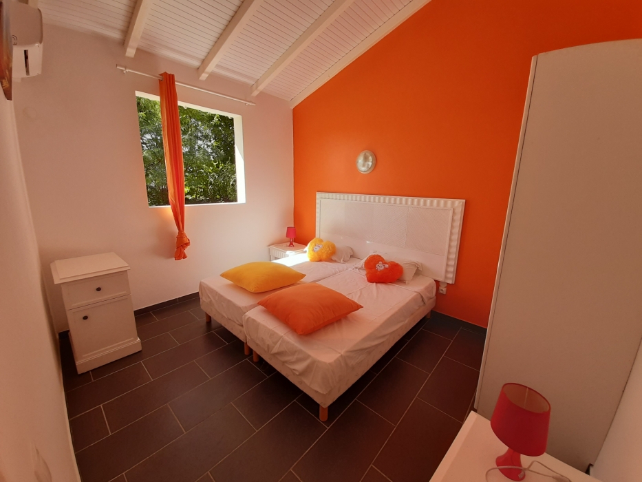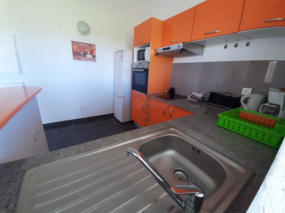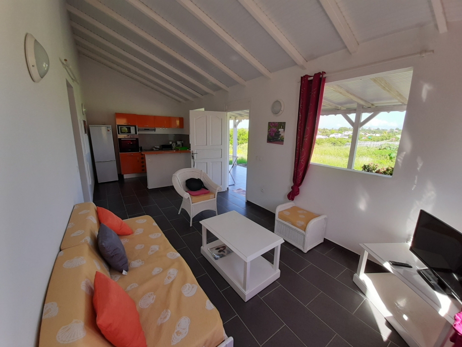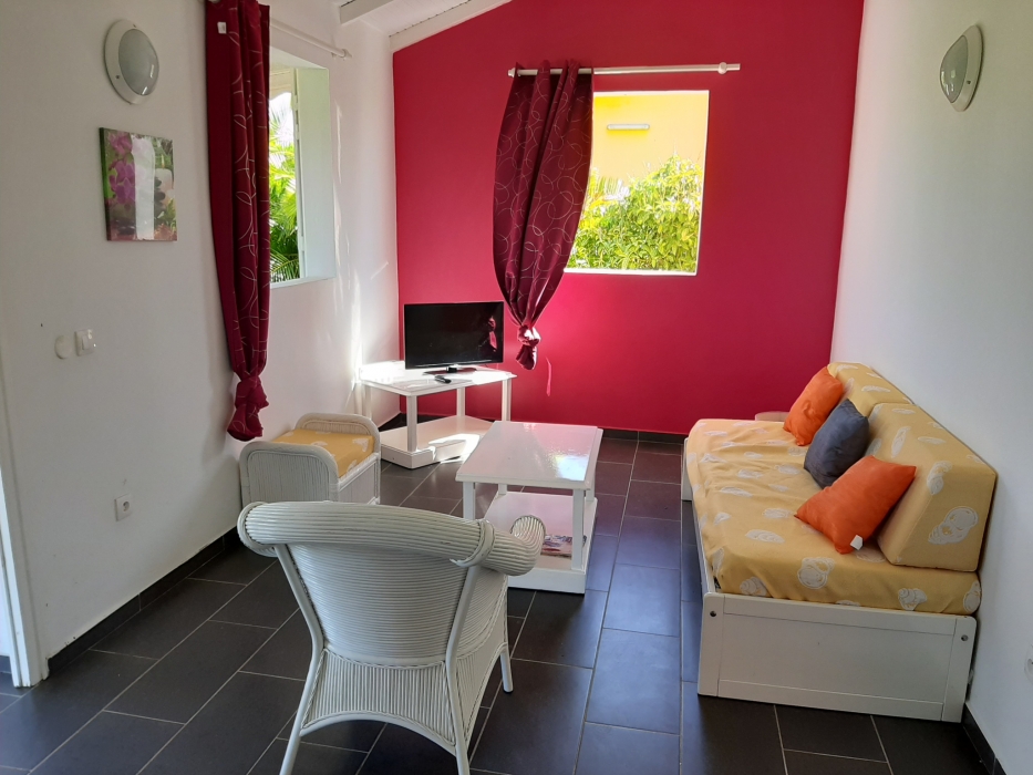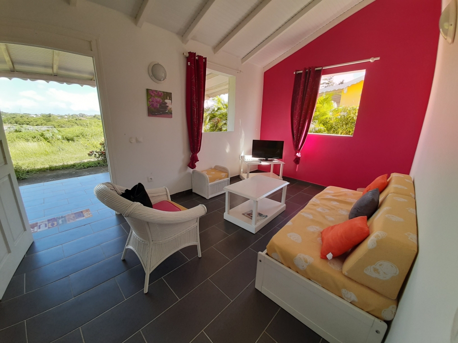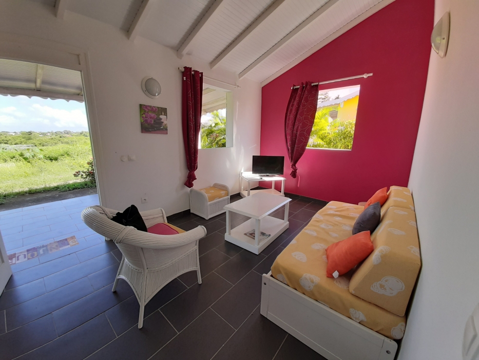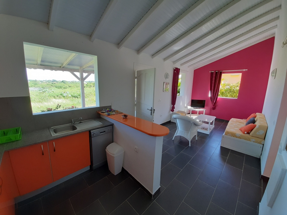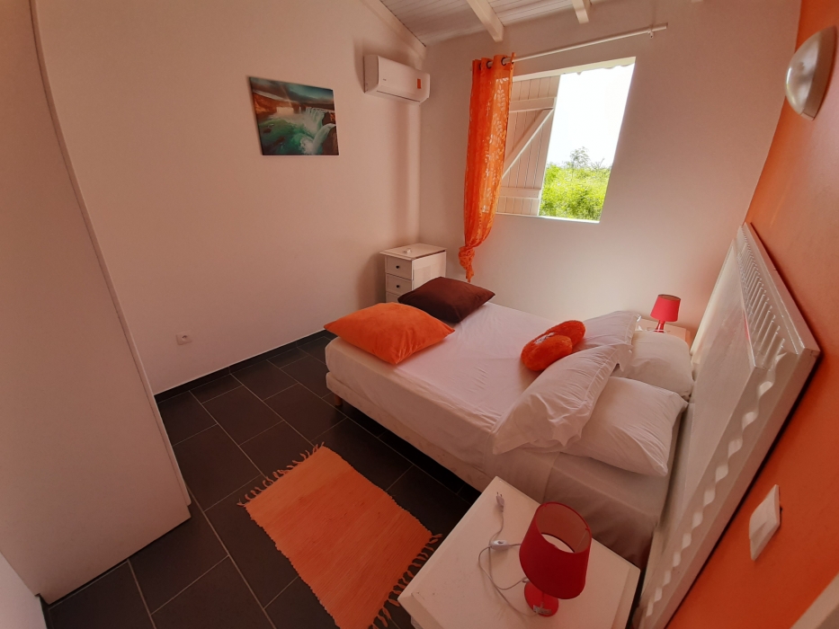 Maison de plain pied, non clôturée, dans un secteur calme et ventilé, sans vis à vis, comprenant deux chambres climatisées, une salle d'eau/WC, un séjour avec cuisine équipée, une terrasse de 20m2. Charges comprises (Eau, électricité et wifi inclus).