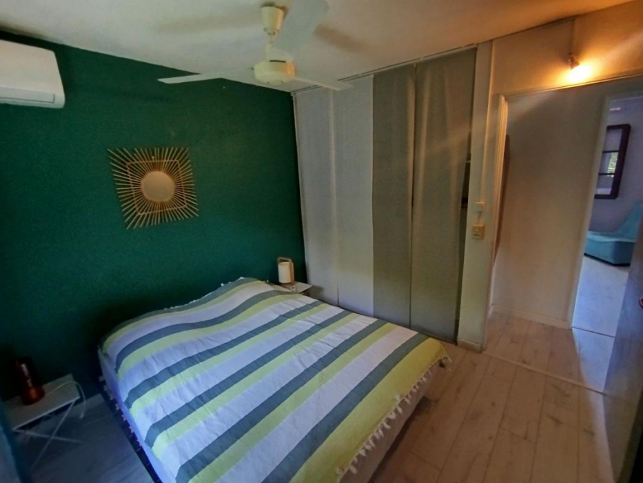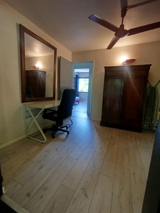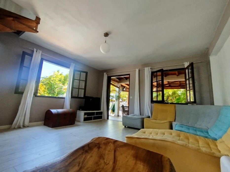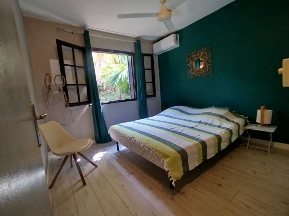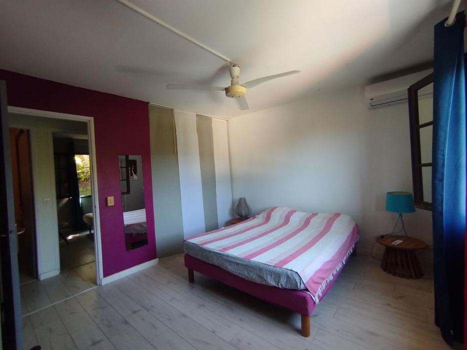 Villa meublée de 125 m (SH) avec piscine dans lotissement, clôturée avec jardin, terrasse non-couverte, varangue. Elle est composée au RDC : d'une cuisine équipée/aménagée ouverte sur un séjour, 1 dégagement, 1 bureau, 2 chambres avec clim, 1 wc, 1 salle d'eau. A l'étage : 1 chambre double traversante avec clim, 1 mezzanine avec clim.