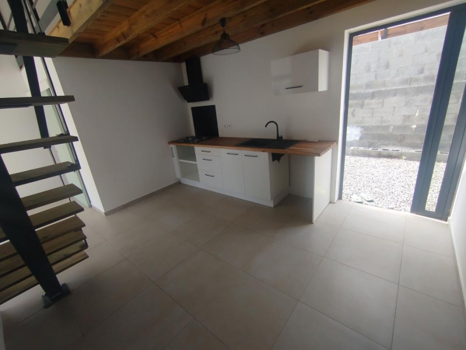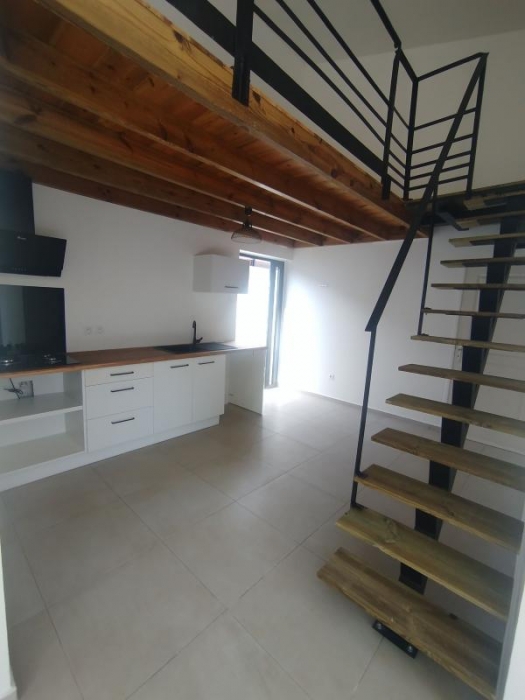 SAINT-LOUIS, maison de type F3 sur 2 niveaux, clôturée, espace extérieur, comprenant au RDC : 1 cour, emplacement pour machine à laver, cuisine ouverte sur un séjour/salle à manger, 1 chambre, 1 dégagement, 1 salle d'eau, 1 wc.