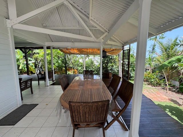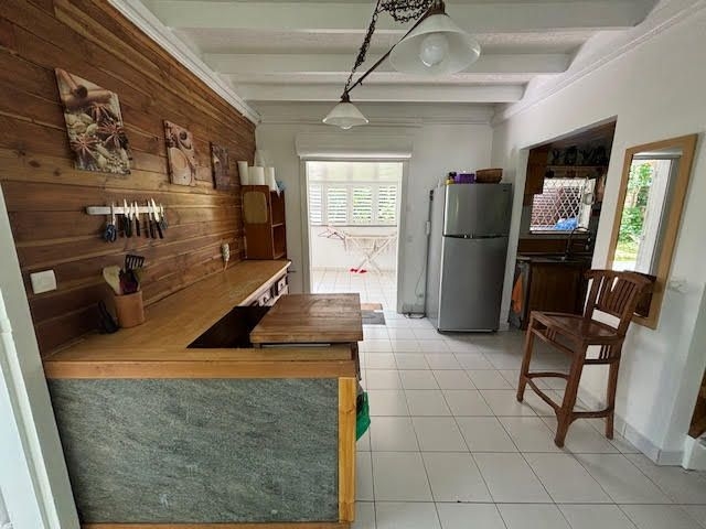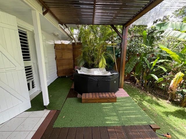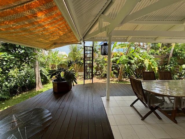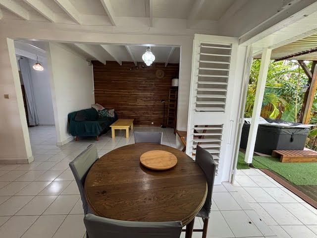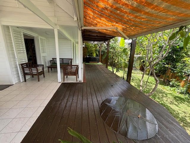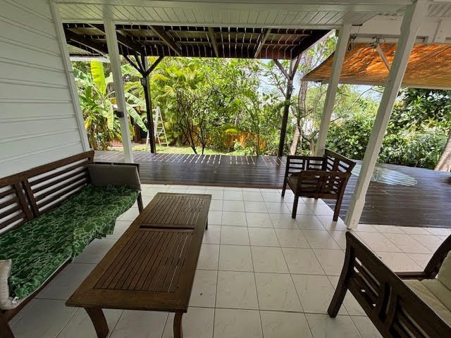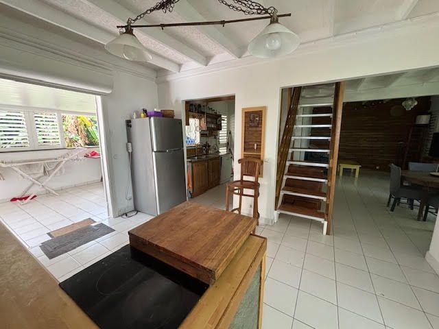 Elle se compose d'une pièce de vie salon/séjour, une cuisine aménagée et équipée, une salle d'eau, un wc indépendant et deux grandes terrasses couvertes au rez-de-chaussée.