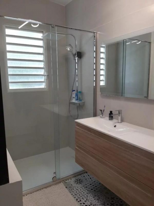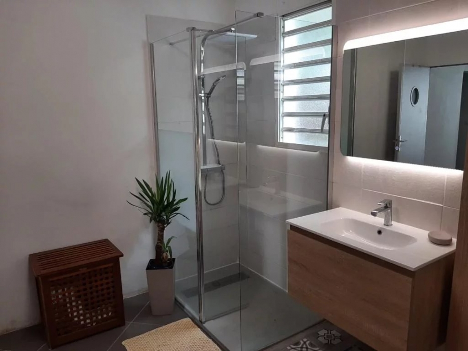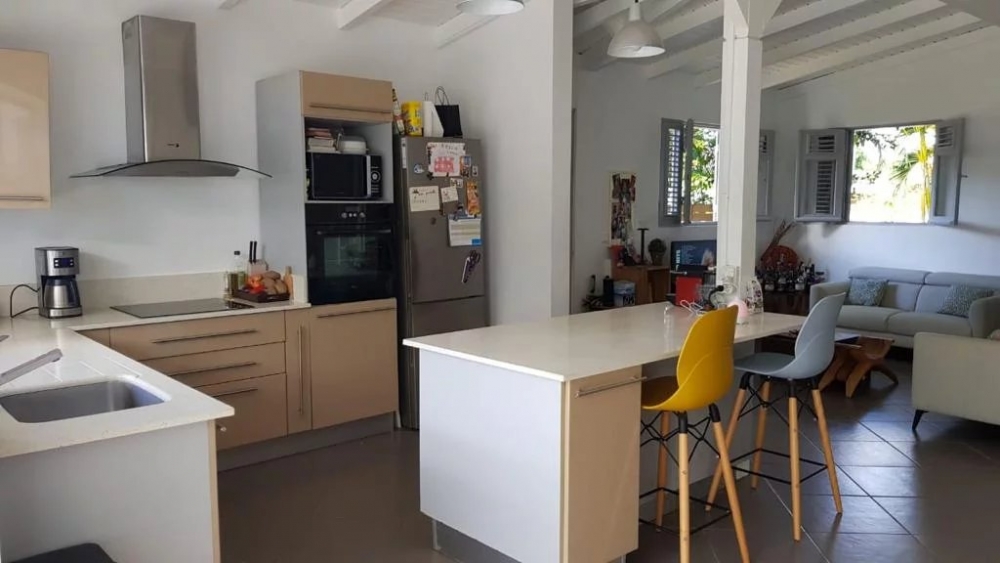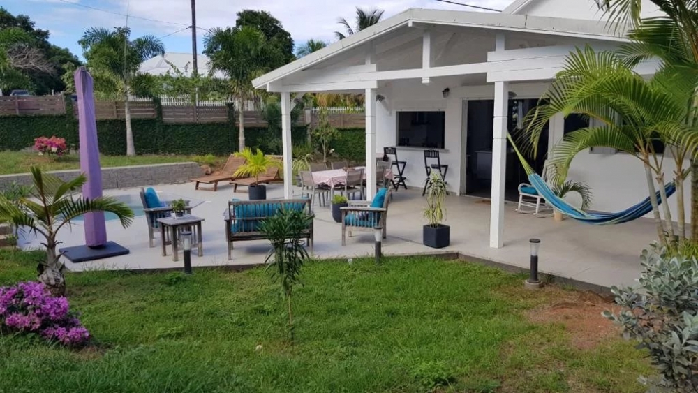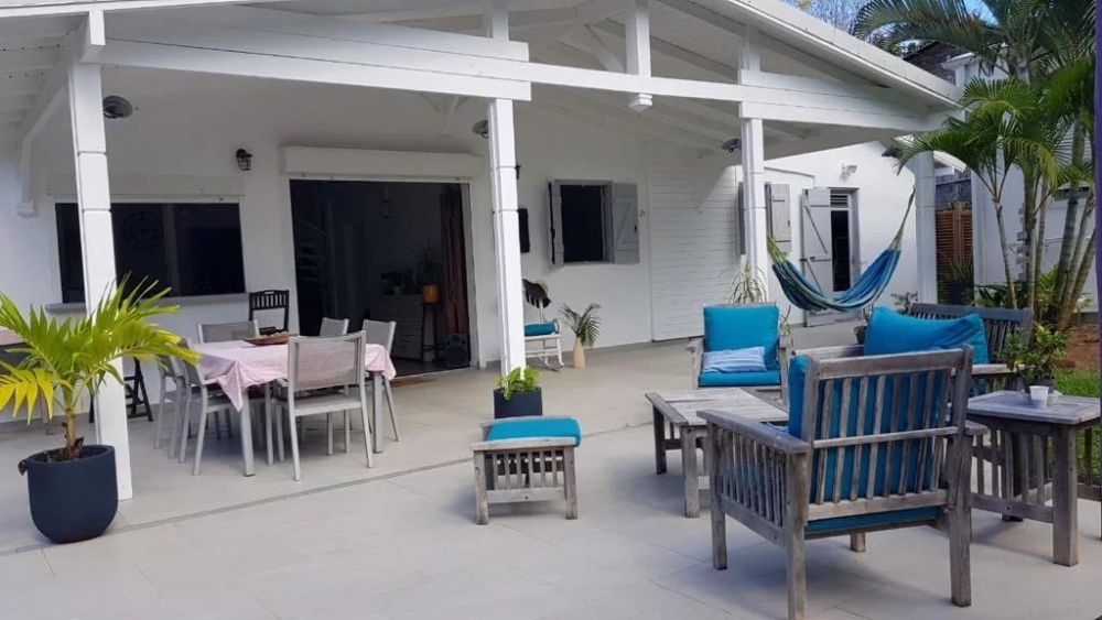 Villa T4 meublée 140m² habitable comprenant : 1 cuisine aménagée et entièrement équipée avec ilôt central donnant sur 1 séjour, grande mezzanine avec rangement, 3 chambres climatisées dont 1 chambre parentale avec sa salle d'eau, 1 dégagement avec placard, 1 salle d'eau avec placard intégré et wc, 1 wc indépendant, 1 cellier, 1 dressing, 1 grande terrasse avec deck tout autour de la maison, petite piscine, jardin clôturé de 400m².