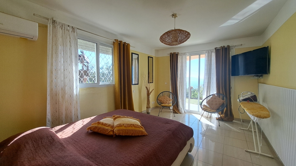 À l’extérieur, vous profiterez d’un très grand jardin avec pergola, idéal pour savourer la douceur de vivre et les moments en famille ou entre amis. Un bien rare à la location en Guadeloupe, alliant espace, confort et panorama d'exception. Les frais d'entretien du jardin sont inclus dans les charges.