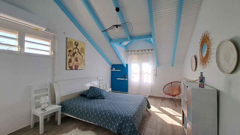- Á l’étage : une mezzanine conviviale desservant 3 chambres (dont 2 avec balcon privatif bénéficiant d'une superbe vue mer) avec leur propre salle d’eau ainsi qu’un WC indépendant.