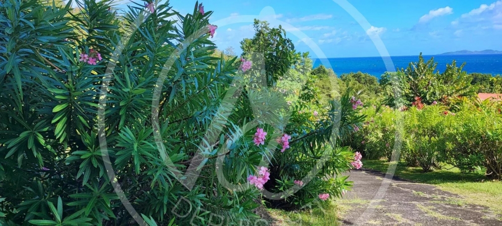 Elle comprend une cuisine aménagée, un séjour d'environ 65 m² donnant sur une belle terrasse de 50 m² avec une magnifique vue sur Les Saintes, une première chambre climatisée avec rangement et sa salle d'eau, une deuxième chambre avec dressing et salle d'eau, un wc visiteur.