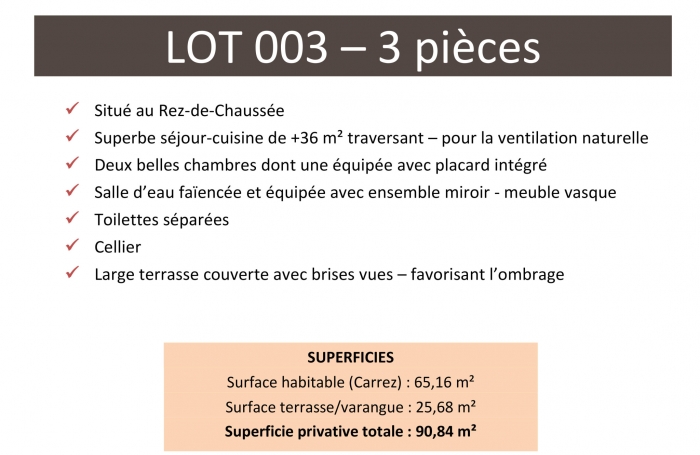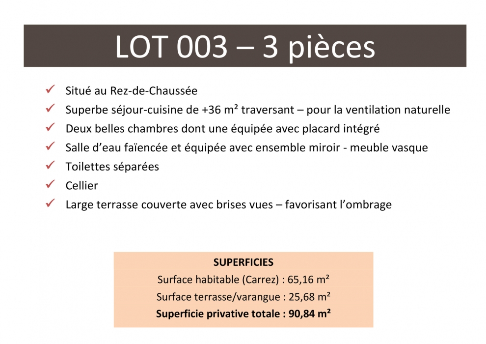 Prix de vente : 297 000 € TTC, parking privé numéroté inclus.
