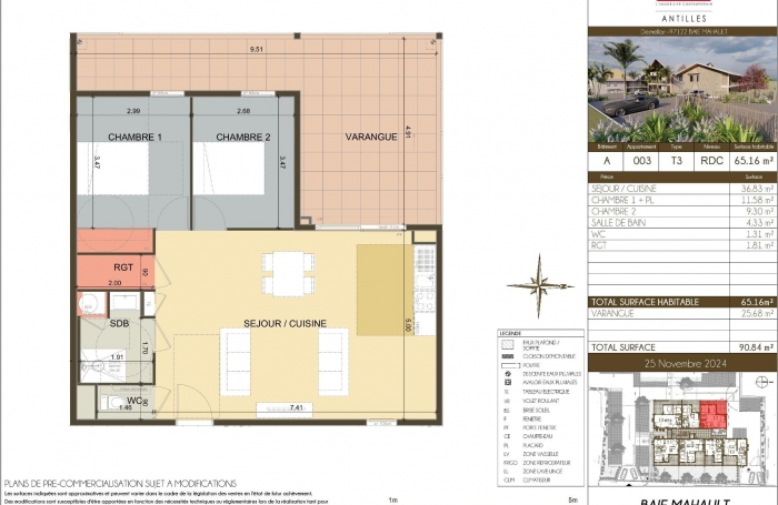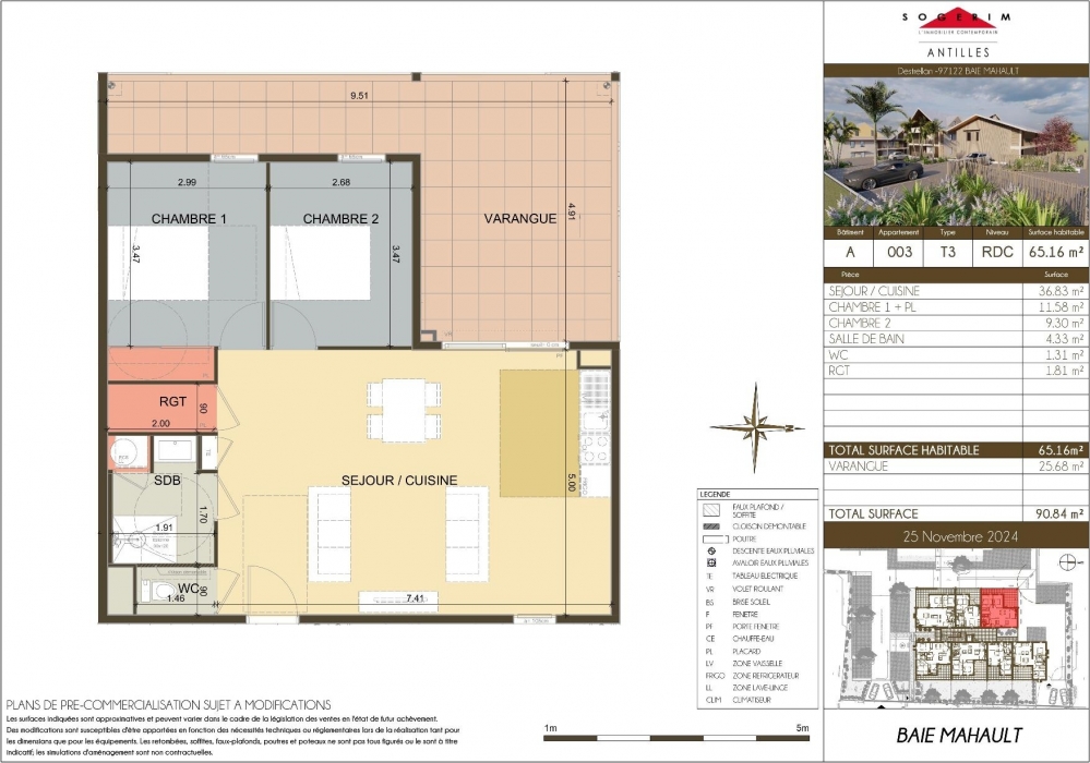 - Grand appartement 3 pièces, résidence 'Bel Canto' à Baie-Mahault -