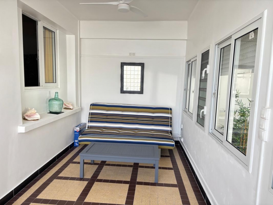 Il est composé d'une véranda transformée en séjour, avec volets roulants, une cuisine aménagée et équipée, une salle d'eau, un wc et une chambre.