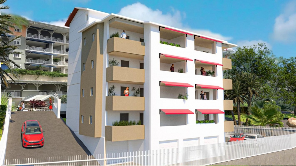 Idéalement situé,ce complexe offre à chaque appartement sans exception, 2 places de parking et une vue sur la baie des Trois-Ilets.