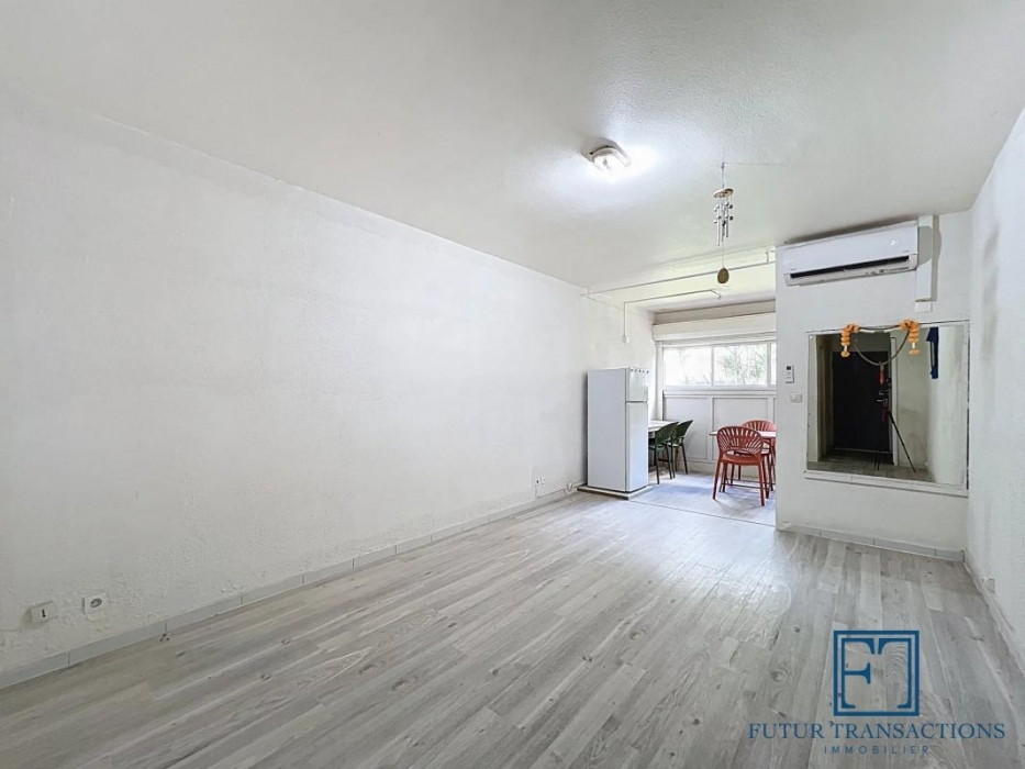 Ce T1 de 29 m², en rez-de-chaussée côté jardin, propose une entrée avec rangement, une pièce de vie climatisée avec revêtement parquet, un coin cuisine aménagé, ainsi qu'une salle d'eau rénovée avec meuble vasque, douche à l'italienne et WC.