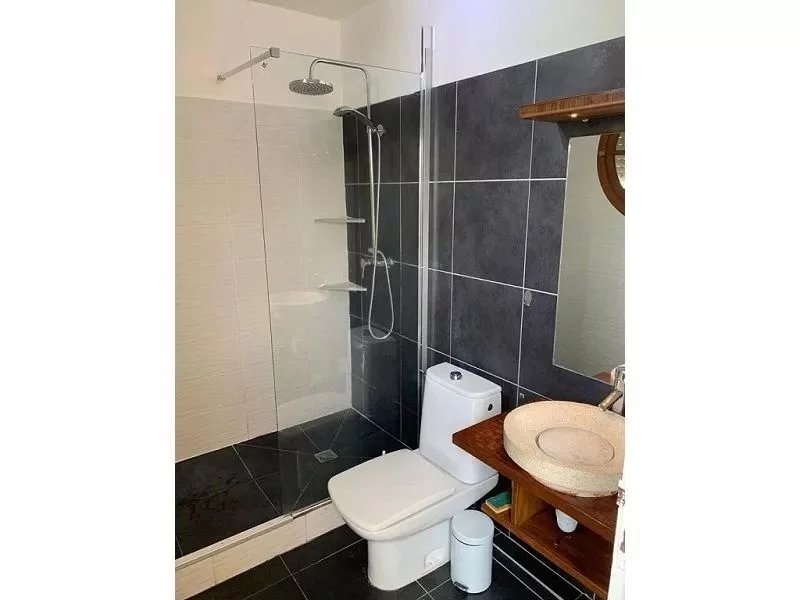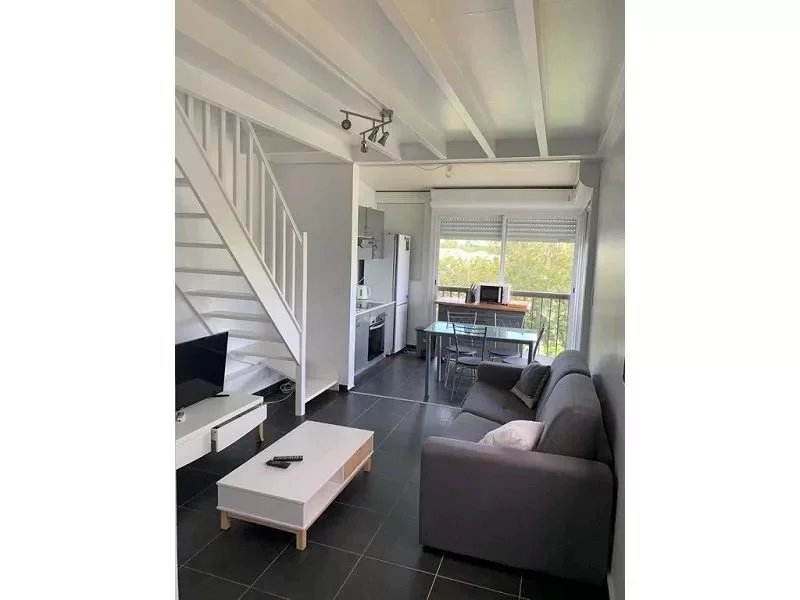 Comprenant : 1 salle d'eau avec wc, 1 dégagement avec placard, 1 coin buanderie, 1 séjour climatisé donnant sur la terrasse et la cuisine aménagée et équipée.