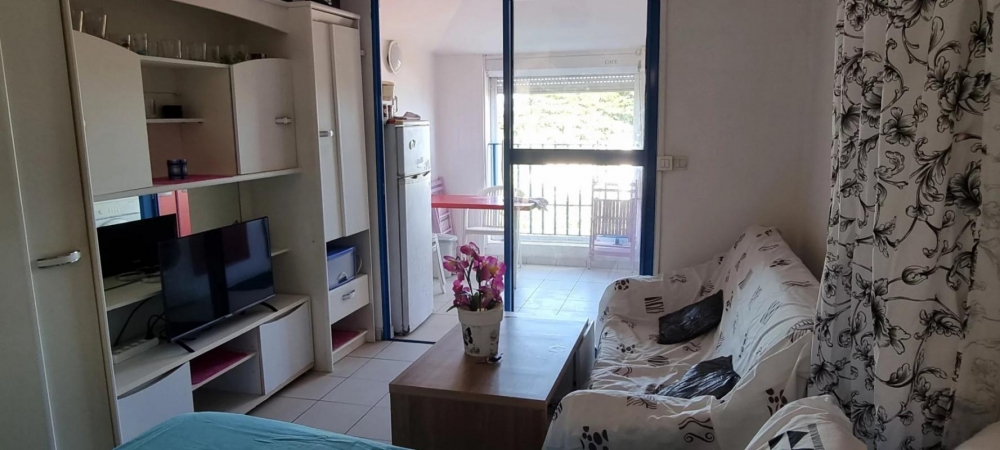 Ce studio est composé : d'une pièce principale, une salle d'eau avec toilette et une loggia avec cuisine aménagée.