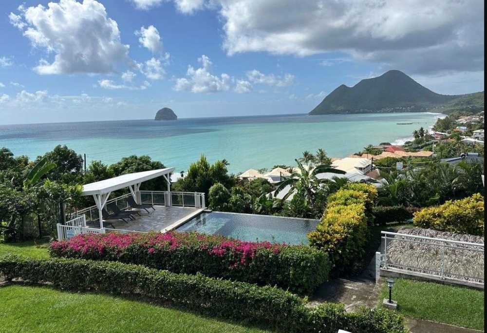 Situé à l'entrée du Diamant, un appartement de standing en duplex avec une vue extraordinaire sur la mer des caraibes, le rocher et la baie du Diamant.