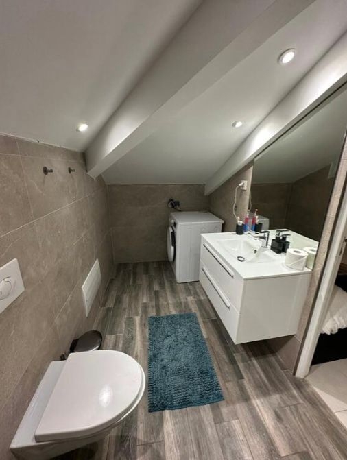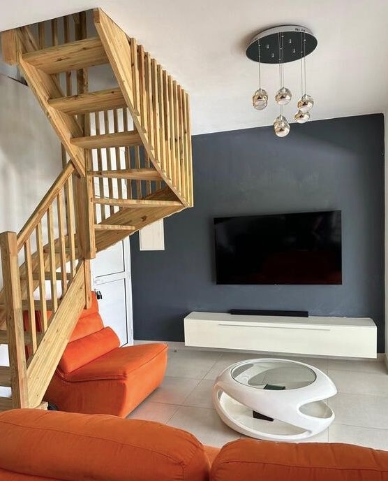 Au niveau principal, une cuisine moderne, un w.c individuel et un espace de vie lumineux ouvert sur une terrasse offrent une magnifique vue imprenable