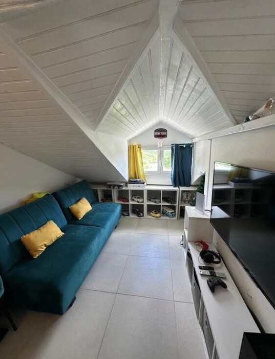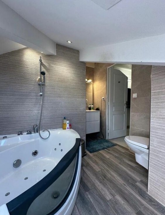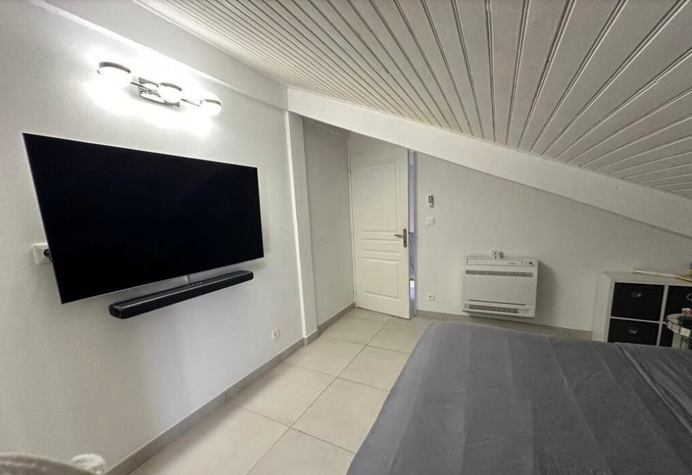 En duplex, d'une surface habitable de 80m² environ, il se compose à l'étage d'un coin bureau, une chambre avec salle de bains attenante, une seconde chambre avec salle d'eau attenante et un espace détente pouvant servir de dressing.