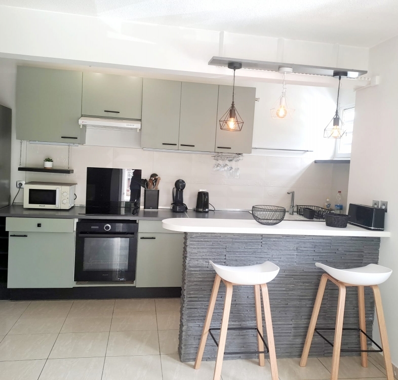Trois Ilets, secteur très prisé, appartement T3 situé au 1er étage d'une résidence de standing avec piscine dans un magnifique parc arboré. Situation idéale, à 5mn à pied de la plage, des restaurants, commerces et navette maritime, activités nautiques, marina, golf, centre équestre, collège. Vous profiterez d'un espace très lumineux de 62 m2 et serez charmé par son agencement, ses 2 chambres climatisées, séjour cuisine ouverte prolongée d'une terrasse de 15 m2. sde, et place de parking privée.