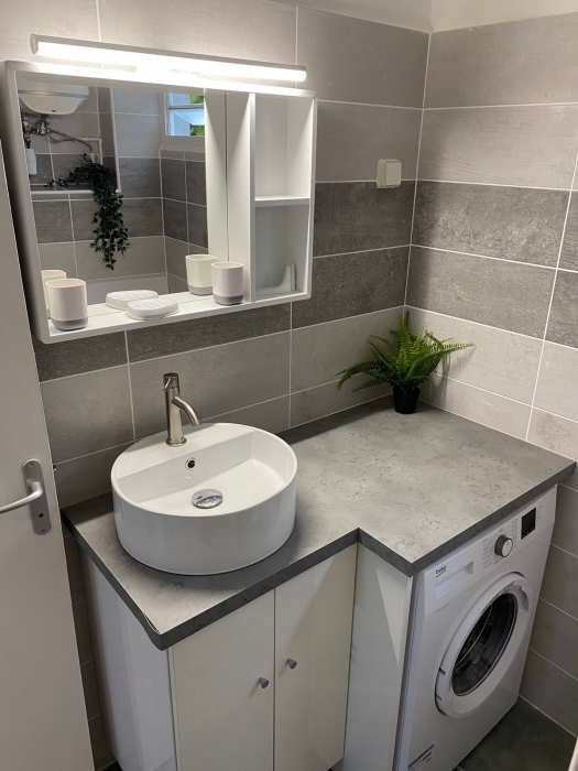 Cet appartement qui vient d’être intégralement refait est vendu meublé et équipé. Il comprends un séjour climatisé avec cuisine ouverte, une chambre climatisée avec placard, une salle d’eau avec WC et une terrasse couverte.