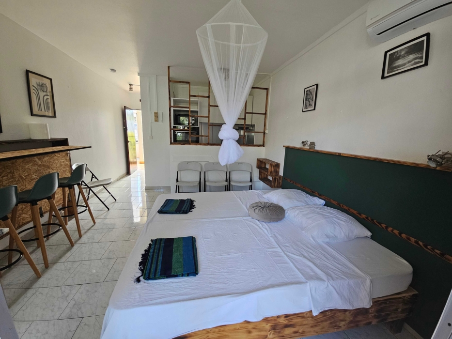 D'une surface habitable d'environ 22 m2, il comprend un espace de vie climatisé et meublé, un coin cuisine équipée, un rangement et un salle d'eau avec toilette intégré ainsi qu'une petite terrasse privative avec vue sur la verdure. Idéal pour un premier achat ou un investissement locatif.