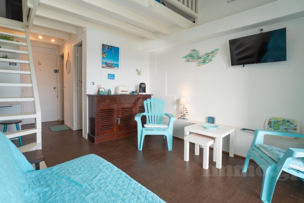 Joli duplex entièrement rénové, équipé, meublé et décoré. Il est situé dans une résidence fermée avec 3 piscines, un jardin tropical et un accès direct à la marina.