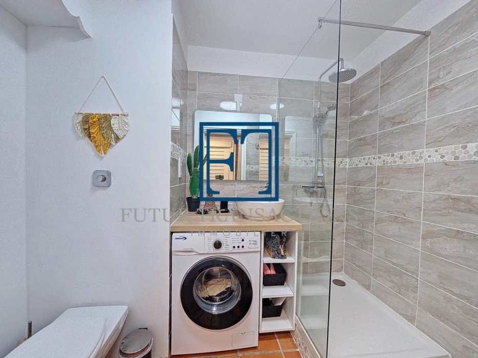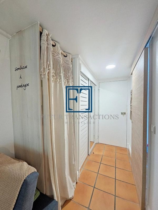 D'une superficie de 28,75 m2 habitable (19,97 m2 en Carrez) il se compose d'une entrée avec placard, salle d'eau avec douche à l'italienne et toilettes suspendues, espace nuit climatisé avec lit double et lit d'appoint, et d'une cuisine équipée ouverte sur la loggia offrant une vue splendide sur la cocoteraie et une vue latérale sur la mer.
