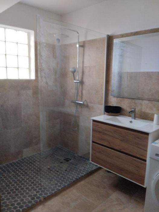 2 chambres dont 1 avec climatisation, une salle d'eau avec douche à l'italienne, un wc séparé, une cuisine équipée et aménagée ouverte sur l'espace de vie, un grand salon lumineux avec grandes baies vitrées et une belle vue montagne.
