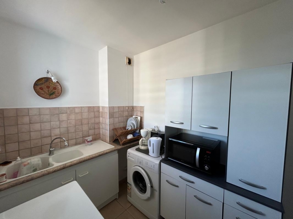 Vendu libre s'occupant, il offre 2 chambres avec placard, un séjour de 23m2 et sa cuisine aménagée, une varangue de 10m2 et 2 places de stationnement.