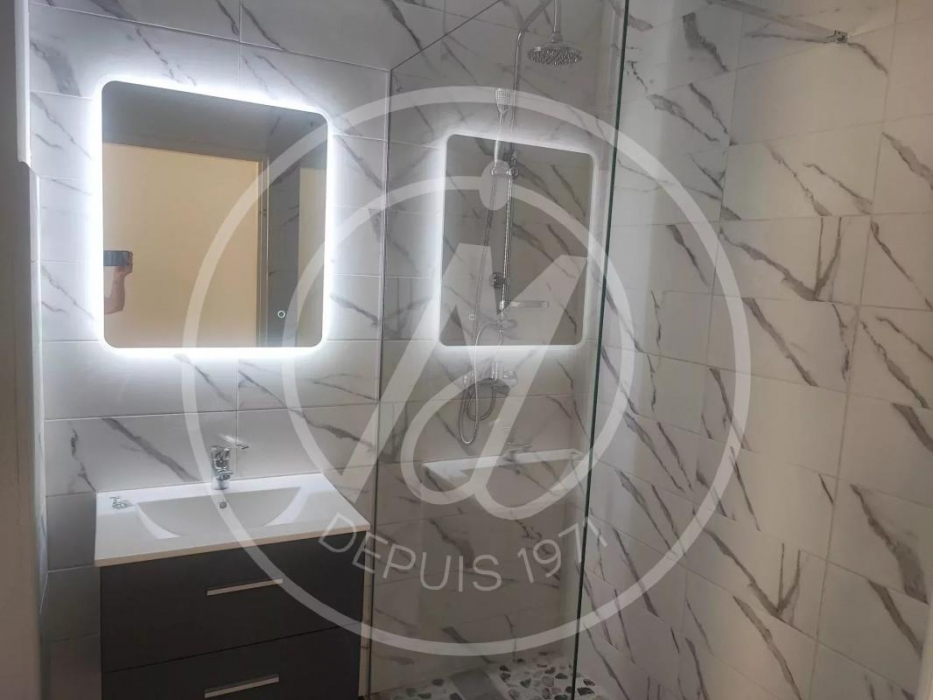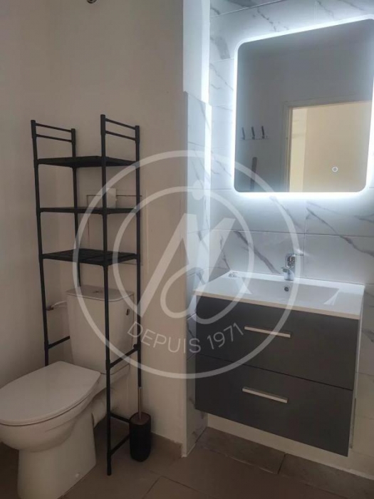 Il comprend une cuisine aménagée, un séjour, une salle d'eau avec wc, une chambre climatisée, une terrasse fermée par un volet roulant électrique, un jardinet.