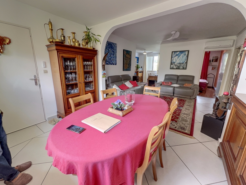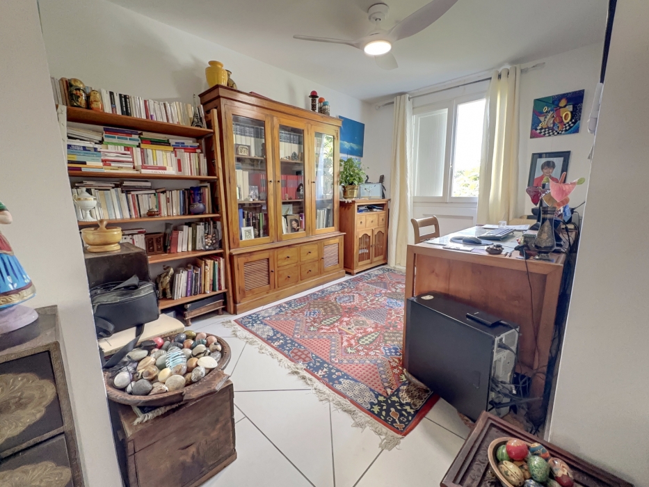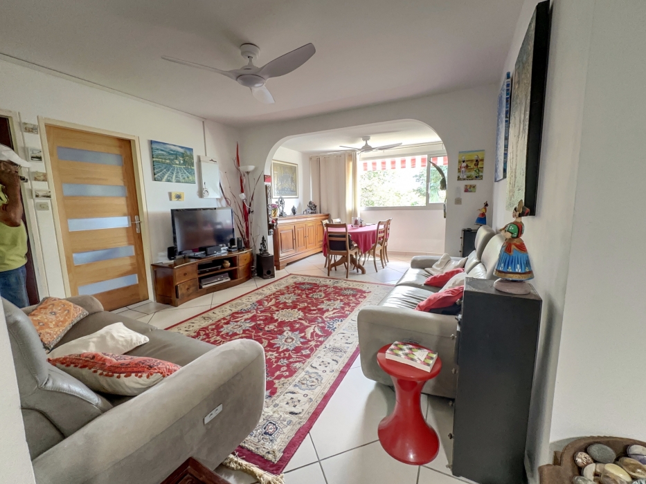 Ste Clotilde, dans une résidence ancienne très bien entretenue avec un parc et bien au calme au fond d'une impasse, au 2ème étage sans ascenseur un T5 en parfait état disposant d'une belle vue dégagée sur le jardin de la résidence et la montagne. Un double séjour d'une belle superficie et un bureau contigu vous offre un espace de vie agréable et sapcieux, la cuisine est séparée et équipée et dispose d'un cellier buanderie attenant. Le coin nuit se compose de 3 chambres, d'une salle d'eau rénovée récement, d'un wc séparé. Le plus un cave de 7m2 au rez-de-chausée et un parking couvert. On appréciera à pied, le parc sportif et l'accès au parc de la trinité.
