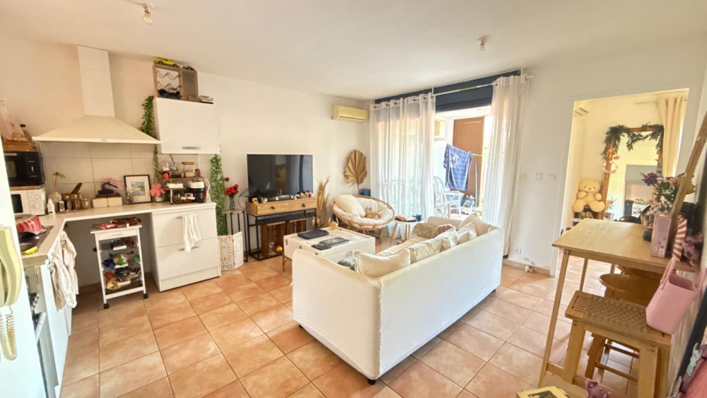 D'une surface utile de 50,34 m² + 30 m² de jardin, cet appartement lumineux construit en 2008 se compose d'une entrée avec de grand rangements, d'une pièce à vivre climatisée avec coin cuisine, d'une salle de bains avec WC et d'une chambre climatisée.