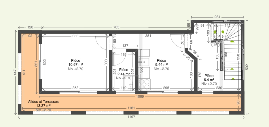 -Au deuxième étage, un appartement de 29,88 m2 vient compléter l’ensemble, avec une disposition identique : entrée, cuisine, espace de vie, salle d’eau avec WC et balcon.