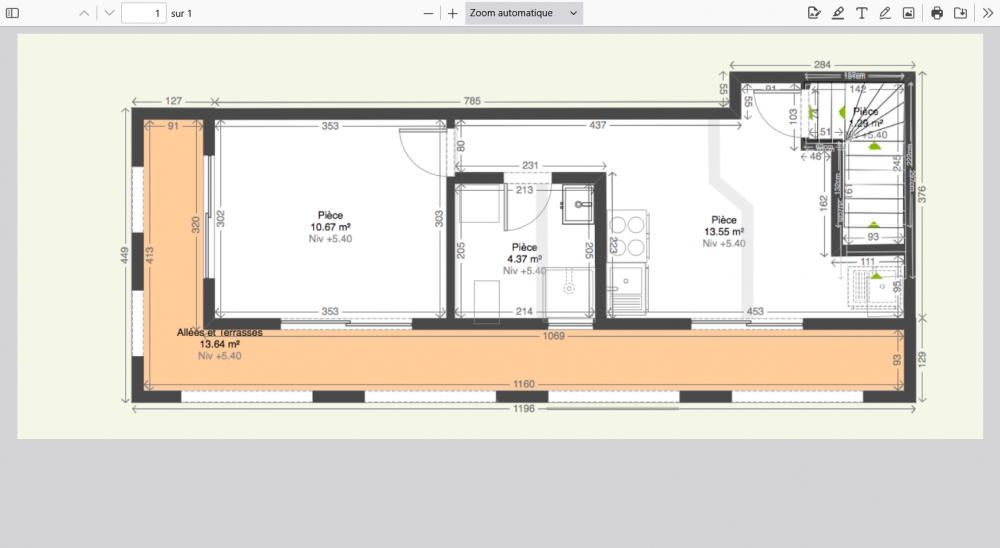 -Au premier étage, un studio de 28.95 m2 composé d'une entrée, une cuisine, un espace de vie, une salle d'eau avec WC, ainsi qu’un balcon.