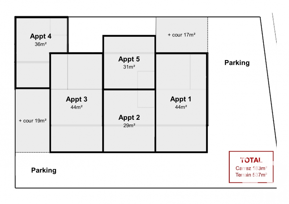 iad France - Quentin Elisabeth vous propose: HAUT RENDEMENT / INVESTISSEURS RENTABLES venez découvrir cet ensemble immobilier de 5 appartements et parkings répartis sur 183m2 habitables. Il est constitué de : 2F2, 1F1, 2 studios. Rapport locatif 3294 € charges comprises (forfait de charges). 2794€ hors charges.