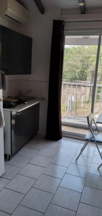 en R+1 cinq studios avec chacun, une pièce principale, une kitchenette, un balcon, une salle d'eau avec w-c.