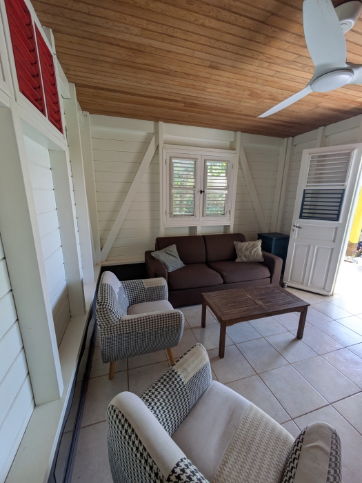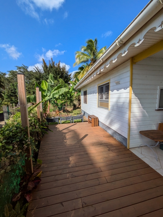 ACS Immobiliers vous propose dans un quartier très calme de Ducos une jolie maison F3 en bois avec jardin. La maison de plain-pied comprend un séjour, une cuisine aménagée, deux chambres climatisées dont une avec placard, une salle d' eau, une terrasse couverte et un deck. cette jolie maison est idéal pour un premier achat, dans un cadre verdoyant et calme. Dans le jardin vous trouverez ses bananiers, brisée, du doliprane, du thym, de la citronnelle et du citron punch. La maison est actuellement louée en meublé et le bail se termine fin janvier 2027. Loyer 1050€ plus 70€ de charges.