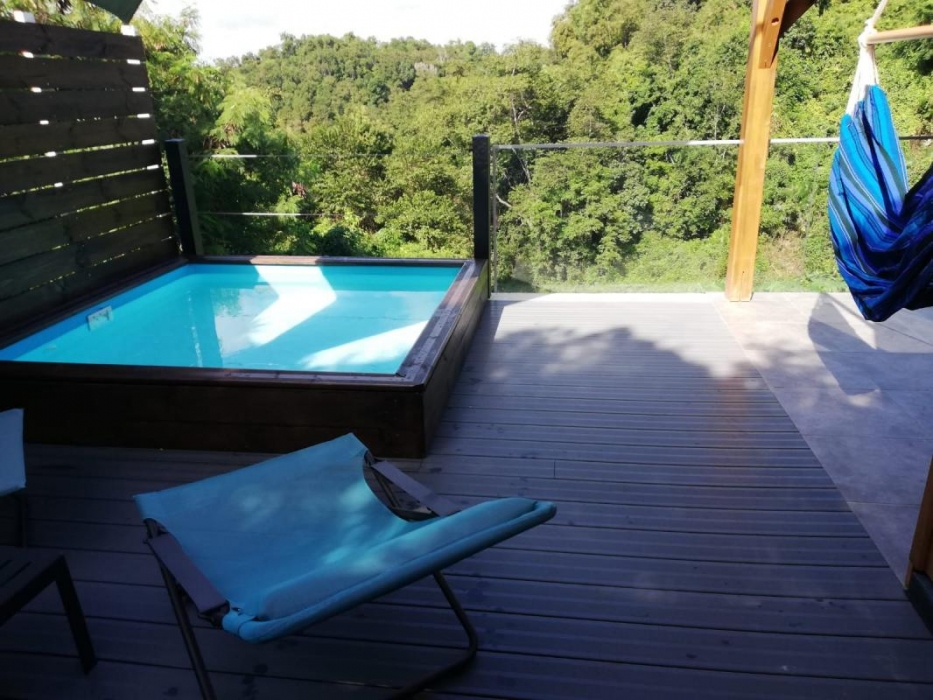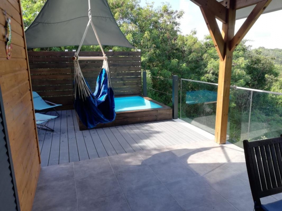 Un bungalow actuellement loué avec terrasse de 30 m², générant un revenu mensuel de 1 100 €.