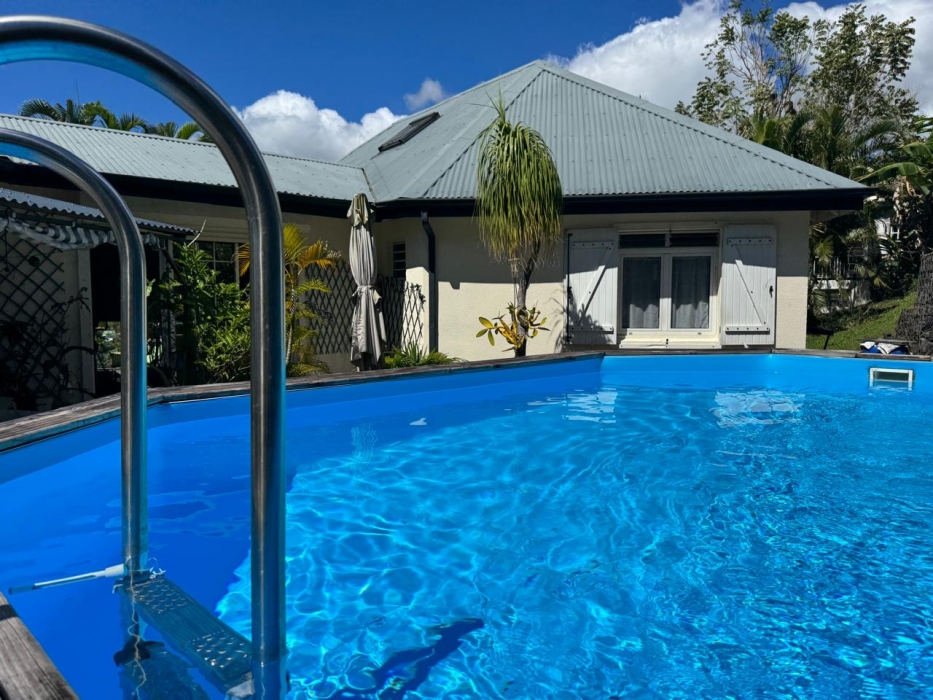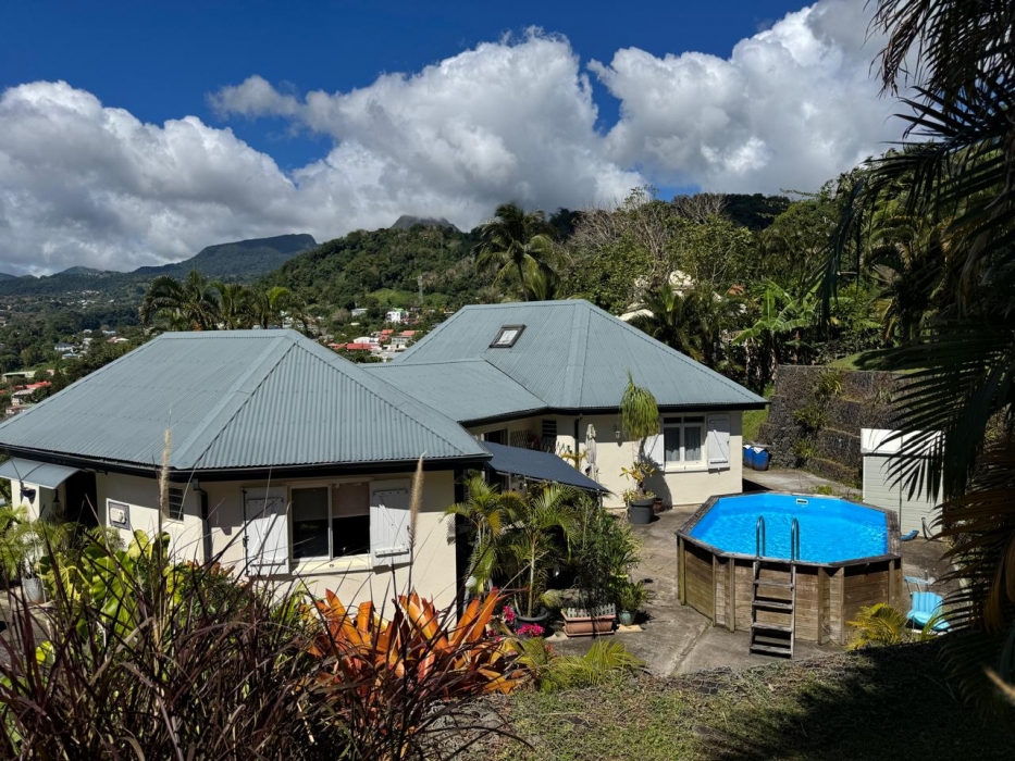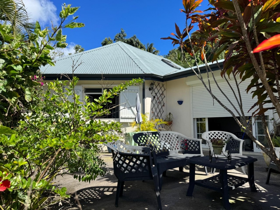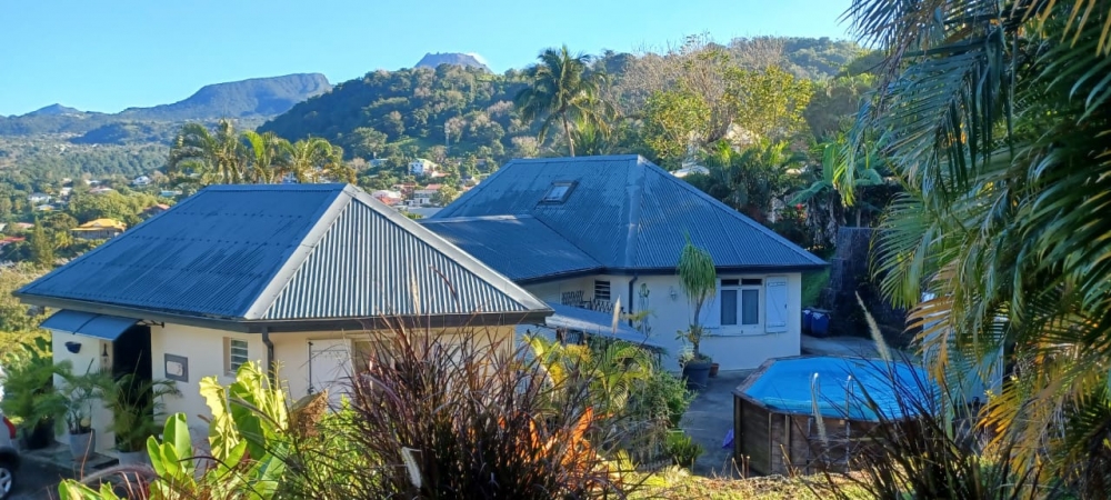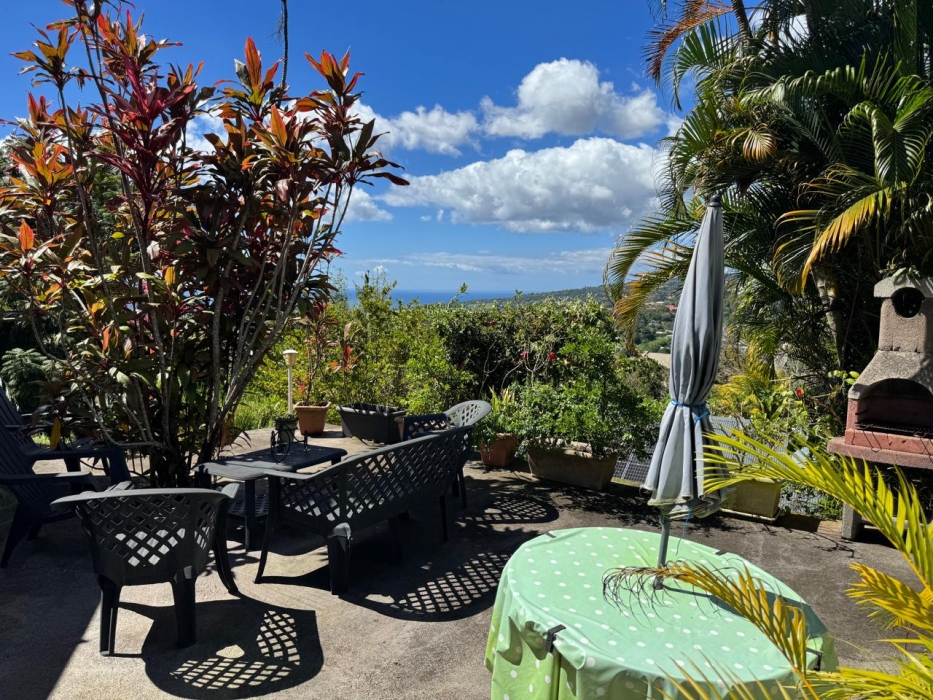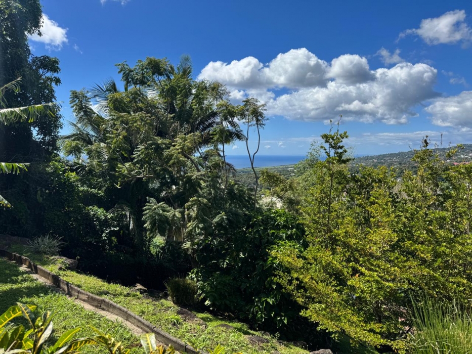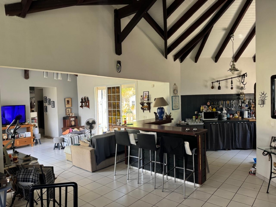 Le vaste séjour traversant, ouvert sur les terrasses, permet de profiter pleinement de la douceur du climat guadeloupéen et du panorama exceptionnel. Le jardin, arboré et sans vis-à-vis, offre un cadre paisible, parfait pour se détendre ou recevoir.